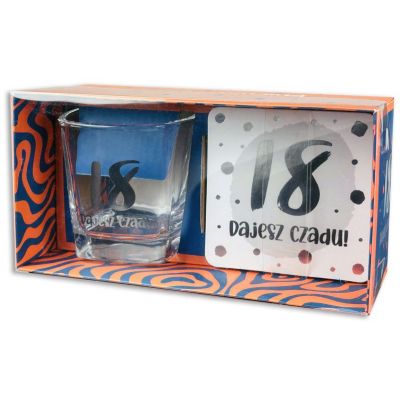 Urodzinowy zestaw szklanka z podstawką zapakowany w kolorowe pudełko.250ml