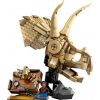 Ruchoma czaszka triceratopsa z otwieraną szczęką — dzieci mogą ustawić czaszkę z otwartym lub zamkniętym pyskiem, na podstawce lub obok minifigurki, płytki z informacjami o miejscu wykopalisk, małych skamieniałości i narzędzi do wykopalisk