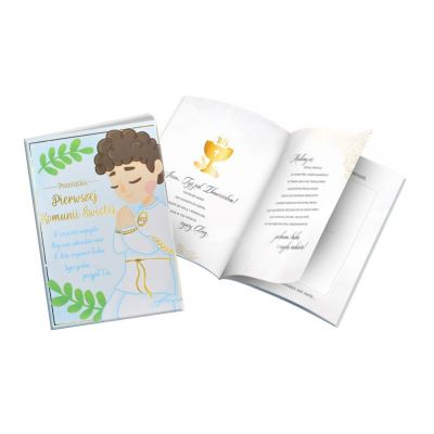 Pamiątka Pierwszej Komunii Świętej - Książeczka Passion Moments Books PMB-0067 Książeczki PMB to produkt wyjątkowy - pięknie wydany, elegancki, a jednocześnie atrakcyjny cenowo. Każda książeczka ma twardą okładkę, kolorowe wnętrze z pięknymi grafikami i cytatami oraz życzenia i miejsce na osobistą dedykację. Na wewnętrznej stronie zdobionej złotą lub srebrną folią okładki wklejona jest specjalna, nieduża koperta, w której można przekazać kartę podarunkową lub banknot. Książeczka PMB Kukartka to idealny prezent na wyjątkową okazję, jaką niewątpliwie jest Pierwsza Komunia Święta. Cechy szczególne: okładka: twarda, wyściełana, zdobienie: złota lub srebrna folia, wnętrze: kolorowe, z grafikami, cytaty, miejsce na dedykację i wpisanie miejsca/godziny uroczystości, gratis: koperta na drobny upominek wewnątrz, okazja: komunia, Pierwsza Komunia Święta.