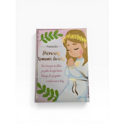 Pamiątka Pierwszej Komunii Świętej - Książeczka Passion Moments Books PMB-0066 Książeczki PMB to produkt wyjątkowy - pięknie wydany, elegancki, a jednocześnie atrakcyjny cenowo. Każda książeczka ma twardą okładkę, kolorowe wnętrze z pięknymi grafikami i cytatami oraz życzenia i miejsce na osobistą dedykację. Na wewnętrznej stronie zdobionej złotą lub srebrną folią okładki wklejona jest specjalna, nieduża koperta, w której można przekazać kartę podarunkową lub banknot. Książeczka PMB Kukartka to idealny prezent na wyjątkową okazję, jaką niewątpliwie jest Pierwsza Komunia Święta. Cechy szczególne: okładka: twarda, wyściełana, zdobienie: złota lub srebrna folia, wnętrze: kolorowe, z grafikami, cytaty, miejsce na dedykację i wpisanie miejsca/godziny uroczystości, gratis: koperta na drobny upominek wewnątrz, okazja: komunia, Pierwsza Komunia Święta.