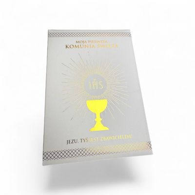 Pamiątka Pierwszej Komunii Świętej - Książeczka Passion Moments Books PMB-0071 Książeczki PMB to produkt wyjątkowy - pięknie wydany, elegancki, a jednocześnie atrakcyjny cenowo. Każda książeczka ma twardą okładkę, kolorowe wnętrze z pięknymi grafikami i cytatami oraz życzenia i miejsce na osobistą dedykację. Na wewnętrznej stronie zdobionej złotą lub srebrną folią okładki wklejona jest specjalna, nieduża koperta, w której można przekazać kartę podarunkową lub banknot. Książeczka PMB Kukartka to idealny prezent na wyjątkową okazję, jaką niewątpliwie jest Pierwsza Komunia Święta. Cechy szczególne: okładka: twarda, wyściełana, zdobienie: złota lub srebrna folia, wnętrze: kolorowe, z grafikami, cytaty, miejsce na dedykację i wpisanie miejsca/godziny uroczystości, gratis: koperta na drobny upominek wewnątrz, okazja: komunia, Pierwsza Komunia Święta.