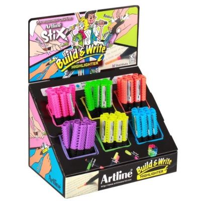 Cechy zakreślacza Artline Stix:żywe kolory,szerokość końcówki 1-5 mm,tusz odporny na działanie wody i światła,do stosowania na różnych rodzajach papieru.