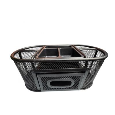 lakierowany metal w kolorze czarnym  – 7 przegródek oraz wysuwana szufladka na akcesoria biurowe  – wymiary: 100 x 114 x 238 mm