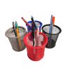 Elegfancki pojemnik na przybory do pisania, ołówki, długopisy itp. Organizer pozwala utrzymać porządek na biurku.Wykonany z malowanej metalowej siateczki w kolorze srebrny. Dostępny w wersji okrągłej o średnicy ok. 8 cm i wysokości 9,5 cm.