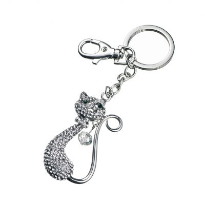Luksusowy brelok metalowy w kształcie kotka z kokardą ozdobionego kryształkami w stylu Swarovski.