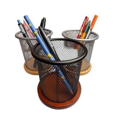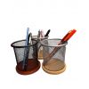 Elegfancki pojemnik na przybory do pisania, ołówki, długopisy itp. Organizer pozwala utrzymać porządek na biurku.Wykonany z malowanej metalowej siateczki w kolorze srebrny. Dostępny w wersji okrągłej o średnicy ok. 8 cm i wysokości 9,5 cm.